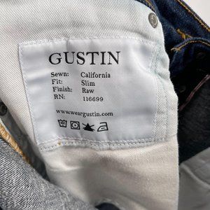 Gustin Size 34 Dark Blue Wash Slim Raw Selvedge Button Fly Jeans