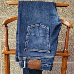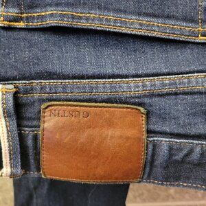Gustin skinny selvedge jeans (116699). Button fly. 36" waist/34" inseam. Pre-owned, with some fading of the raw indigo as expected, but lots of life left in them. No holes or tears.