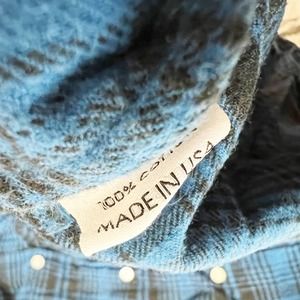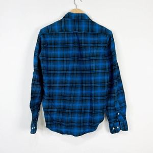 Gustin mens slim long blue black flannel plaid button down shirt size Medium