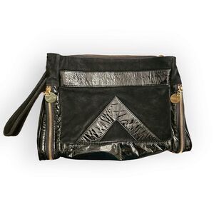 Gustto Black Patent Leather and Suede Large Wristlet Lapol Clutch