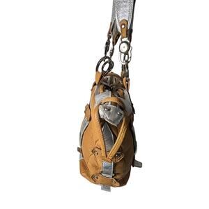 Gustto Italian Leather Large Satchel Bag Tan Silver