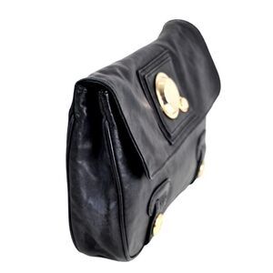 Gustto SOFT BLACK GENUINE LEATHER FLAP LOGO CLUTCH HANDBAG WALLET PURSE