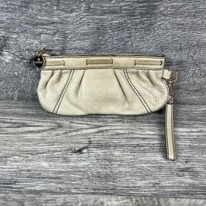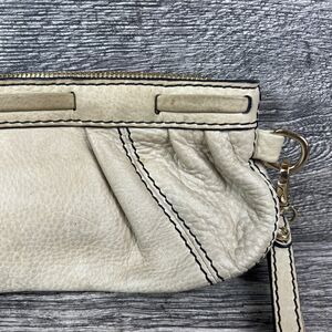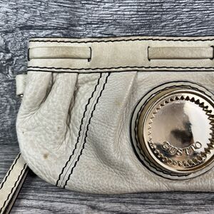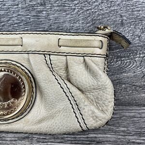 Gustto SOFT Ivory GENUINE LEATHER FLAP LOGO CLUTCH HANDBAG WALLET PURSE Money