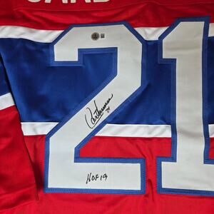 Celebrate a defensive legend with this custom Montreal Canadiens jersey autographed by Guy Carbonneau, complete with his “HOF 19” inscription. The signature was witnessed in person and guaranteed authentic by Beckett Witness Certification, making this a standout collectible for any Habs fan or Hall of Fame memorabilia collector. The jersey features stitched name and numbers in classic Montreal colors and presents beautifully for display.
