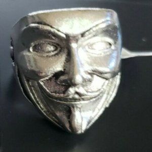 Here is an amazing Guy Fawkes Ring Silver Black Anonymous Vendetta V Mens Stainless Steel Size 12