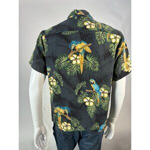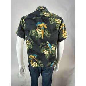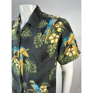 Guy Harvey By Aftco Bluewater Parrot Floral Silk Hawaiian Shirt M