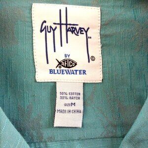 Guy Harvey Men's Shirt Medium M Short Sleeve Fish Palm Trees Turquoise