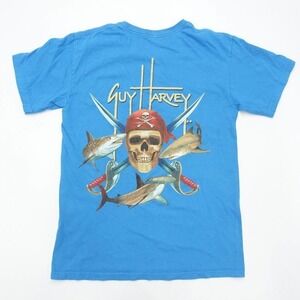Guy Harvey T-Shirt Men's Size Small Blue Crew Neck Short Sleeve Graphic Print.