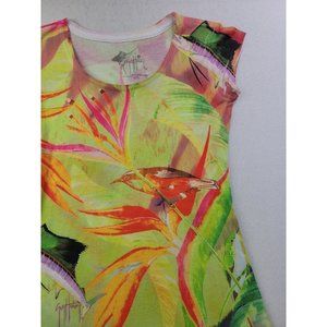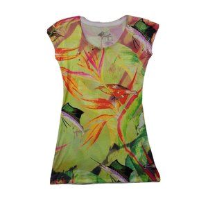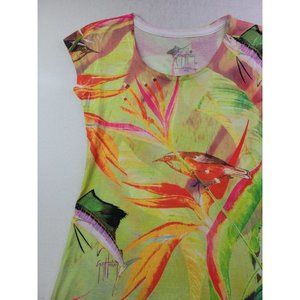 Guy Harvey Women's S T- Shirt Dress Bright Color Bird Fish Print Round Neck SS