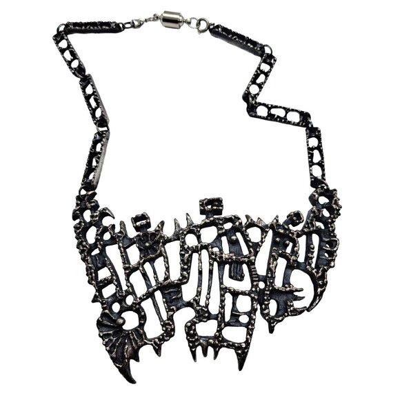 Guy Vidal Brutalist Curved Bib Necklace 18-22" Long