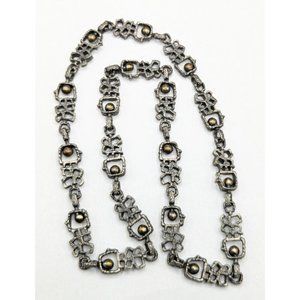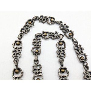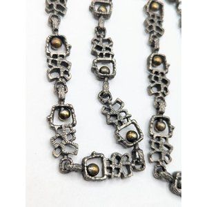Guy Vidal Vtg Brutalist Modernist Silver Pewter Bronze Tone Ball Necklace 28"