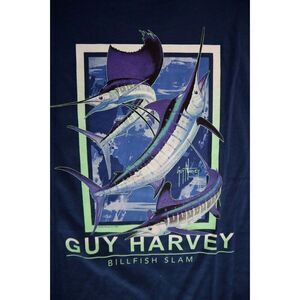 Guy Harvey Men's Sz M Dark Blue Crew Neck S/S Classic Fit Pocket Graphic T-Shirt