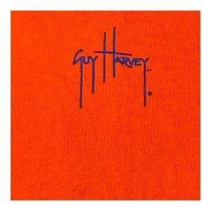 Show your Florida Gators pride with this vibrant orange Guy Harvey t-shirt. The high-quality cotton fabric ensures durability and comfort, while the bold graphics on the back and subtle logo on the front make a statement. A must-have for fans or collectors.