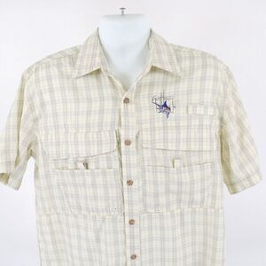 Guy Harvey Vented Fishing Collared Shirt Small Yellow Blue Plaid Textured Short Sleeve