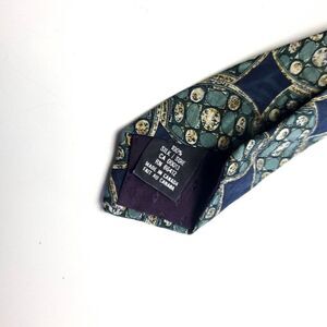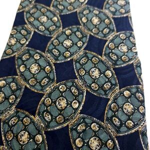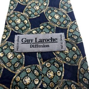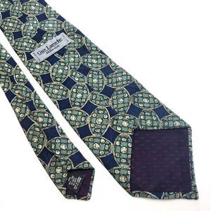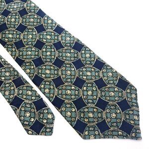 Guy Laroche Green Blue Abstract Geometric Print Short Wide Silk Tie