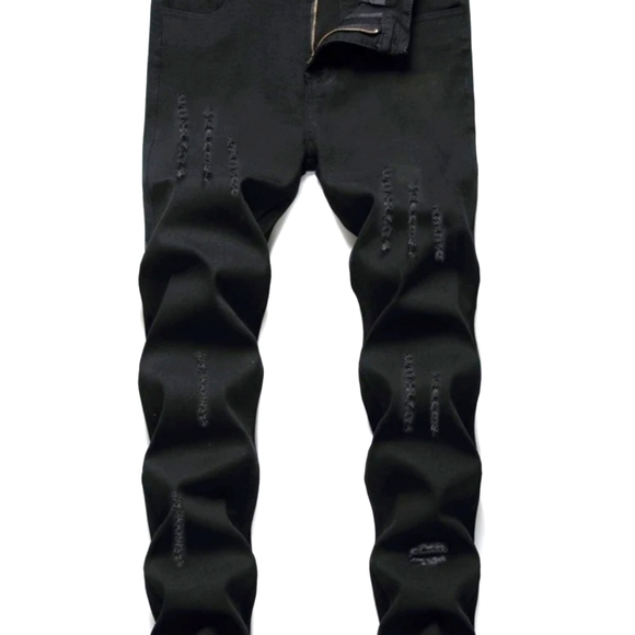 Guys Ripped Zip Fly Jeans Black Size 28 measurements in photos NWT