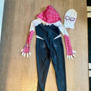 Gwen Stacy Ghost Spider costume in youth size large. Includes a gloved bodysuit and face mask. Some smudging on gloves.