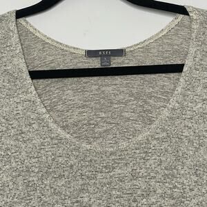 GYFT Long Sleeve Top Scoop Neck Drop Shoulder Sweater Gray Tan Large