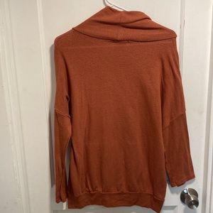 Gyft Burnt Orange Cowl Neck Asymmetric Sweater