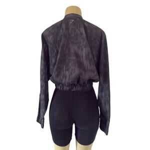 Gym Shark Jacket Women's Small Black Cropped Full Zip Mesh Sides Logo Print