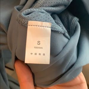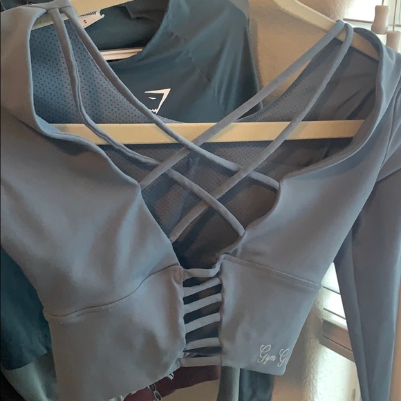 cropped, form fitting, light blue-ish gray, built in bra with pads