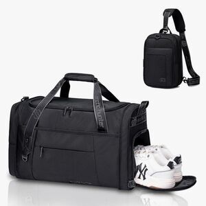 Individual Shoe Pocket: The gym bags for men with a separate roomy side compartment that easily fits two pairs of men’s shoes or dirty clothes. Built-in vents work to dispel odors, keeping your shoes fresh and the rest of your gear pristine. Made from easy-to-clean, wear-resistant tarpaulin material, it’s both durable and lightweight. It keeps you organized whether you’re heading to the gym, work, or off on a weekend trip.