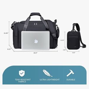 Large and Multi-pocket: This ARCTIC HUNTER AH gym bag is your ultimate storage ally. Measuring 18.5 x 8.3 x 11.8 inches with a 42L capacity, it’s tailor-made for 3-5 day short trips. It comes with a range of compartments, including a 15.6” laptop sleeve, a front slip pocket, an easy-access pocket, two zippered side pockets, and a large main compartment. It offers easy packing convenience for travel.