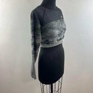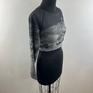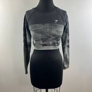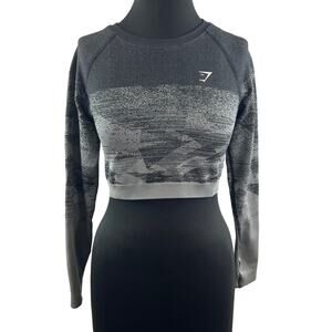 GymShark Adapt Ombre Crop Top Gray Long Sleeve Sweat-Wicking Pullover Size L
