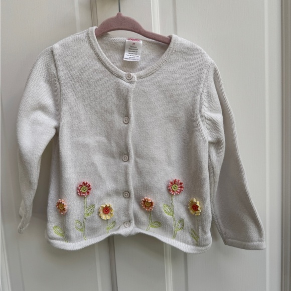 Gymboree 3T Off White Girls Button Down Sweater with Floral Embellishments