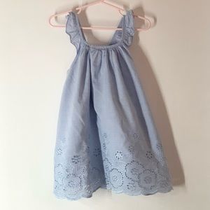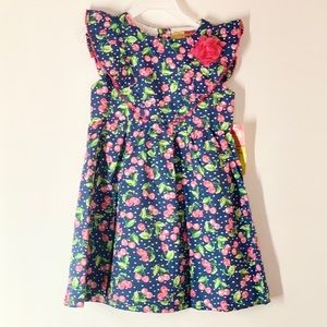 Dress with top ruffle and splashes of Blue Green Yellow with Bottom Ruffle and slip underlay 100 % cotton