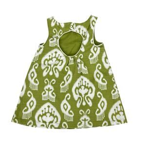 Gymboree 6-12 Month Chartreuse Green & White Ikat Print Cotton Jumper Dress