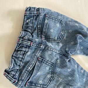 Adorable Gymboree anchor print jeans for girls, size 4. These blue jeans feature a charming nautical anchor design and adjustable waist tabs for a perfect fit. Great for playdates or casual outings! They are in great condition and ready for a new home. Don't miss out on these cute and comfy jeans!