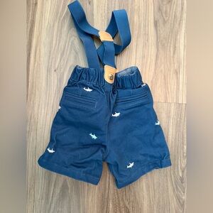 Gymboree Baby Blue Shorts with Shark Design and suspenders size 12-18M
