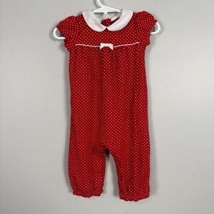 Gymboree Baby Girl 6-12 Months Red Polka Dot Leggy Romper Short Sleeve Collared