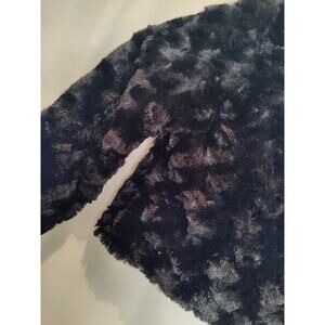 Still has original store tags cute waist length coat, long sleeve with one button closure on collar. Super soft black faux fur.