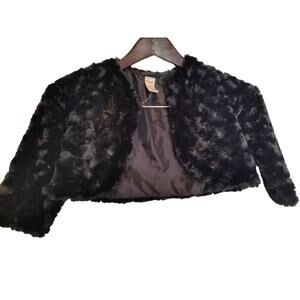 Gymboree Black Fuzzy Cardigan Long Sleeve Faux Fur Coat Bolero Shrug 2T-3T