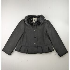 Gymboree black wool coat with faux fur collar, waist length, very good condition, no stains or holes, no fading, size 4t-5t
