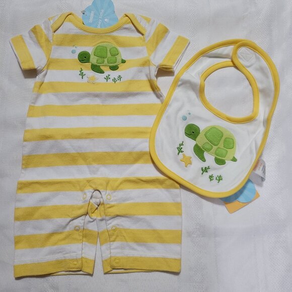 Gymboree Bloop Bloop Bloop Turtle NWT striped Romper & Bib set. Mixed Bin Z33