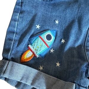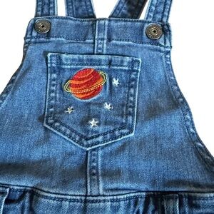 Gymboree Blue Denim Jean Shortall Overall Embroidered Space Rocket Planet Marc