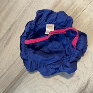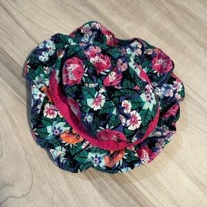 Gymboree Blue & Pink Floral Pattern Hat With Velcro Chin Strap-Size 0-12 Months