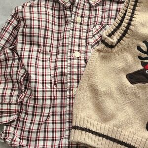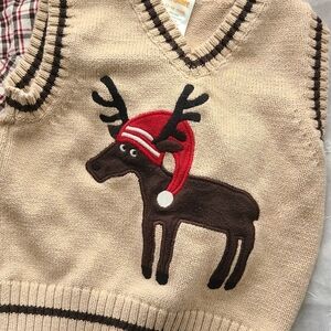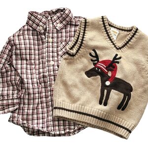 Gymboree Boys 12-18 Months Red Plaid Shirt and Tan Reindeer Vest Christmas