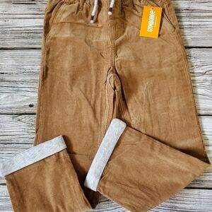 The top is made of nice soft cotton and features a beautiful skiing sloth applique with embroidery. The pants are jersey-lined. The pants are very, very soft and comfy! Great fit.