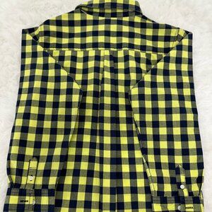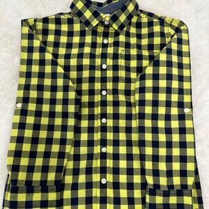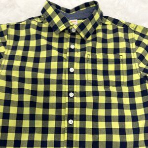 This stylish Gymboree long-sleeve shirt features a bold navy blue and lime yellow checkered pattern, perfect for adding a fun pop of color to your child’s wardrobe. Made from 100% cotton, it’s soft, breathable, and comfortable for all-day wear. The shirt includes button cuffs and a classic collar design, ideal for both casual and dressy occasions.