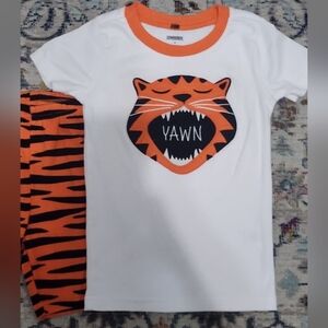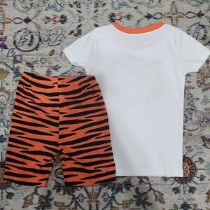 Gymboree has you covered with this matching tiger tee and shorts casual daytime set or wear them at night for pajamas. Either way you will love the crew graphic tee and elastic waist shorts. Stay cool and trendy this season.