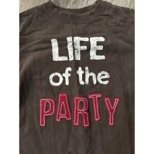 Gymboree boys size 6 brown long-sleeve shirt with white layered-look sleeves and a fun Life of the Party” graphic. Play condition due to some fading and minor staining on the sleeves. From a smoke-free, pet-free (SF/PF) home. Combined shipping available for multiple purchases.
