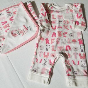 Gymboree Brand New Baby {Alpa-BEAR-Soup} Used Blanket & 0-3 month Romper.