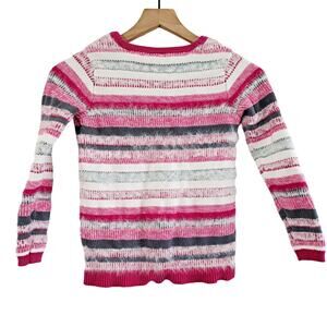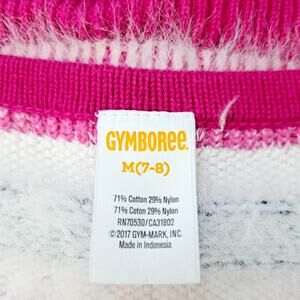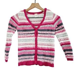 Gymboree button up fuzzy cardigan. Size medium. Length is 19 inches. 13.5 inches pit-to-pit. Colors are gray, pink and white.