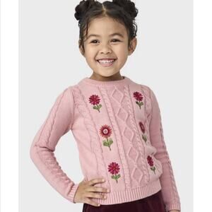 Gymboree Cable Knit Sweater Girls Size 7 Pink Long Sleeve Round Neck embroidered