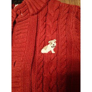 Gymboree toddler red sweater cardigan with buttons and embroidered puppy. Size 18-24 months. Good condition. Thanks for looking!