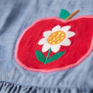 • apple appliqué at the chest